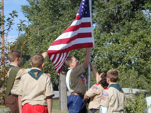 September 11th was celebrated at the new Louisville sign with the Middle school students. Members of the Boy Scout troop raised the flag on the new pole and members of the choir sang at the festivities.
