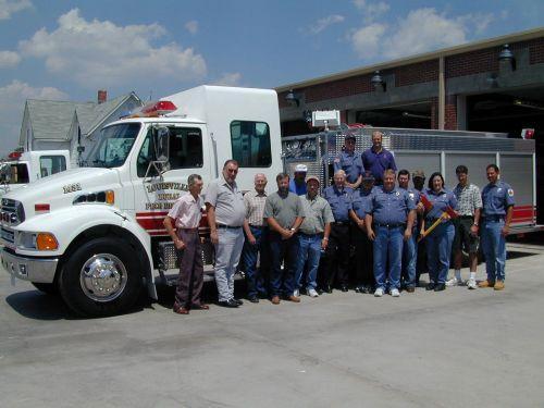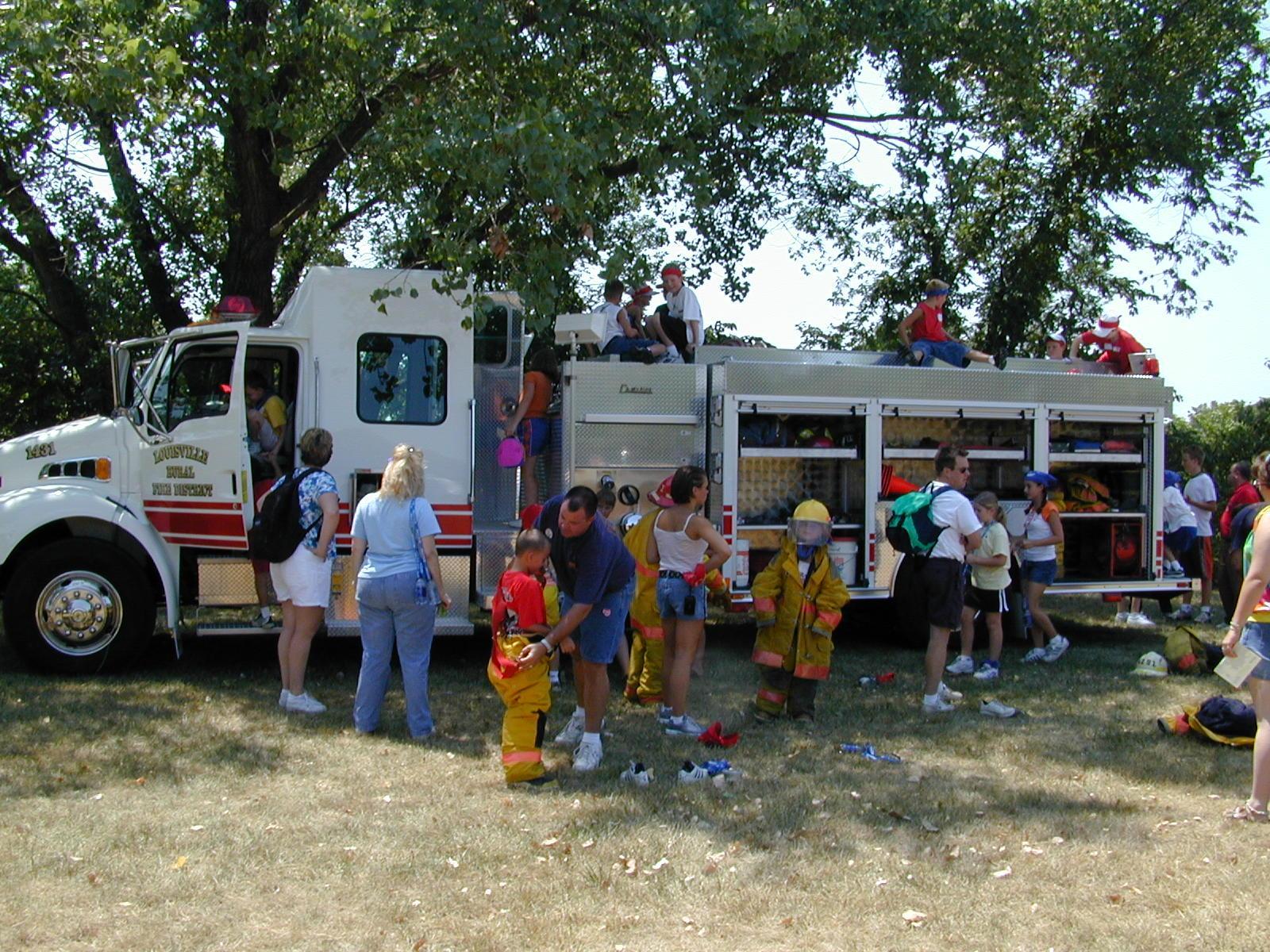 was the new fire truck at Louisville. Volunteer Firemen Bub Heard and Bob