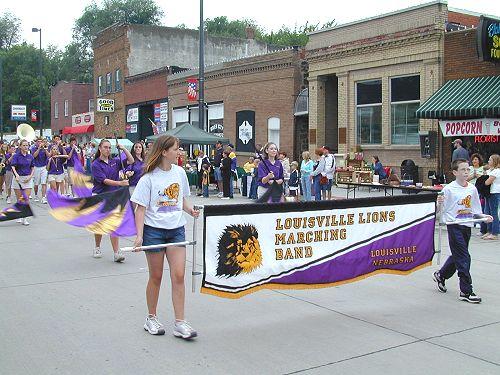 The Louisville High School band marches down Main Street under the direction of band director Kevin White.