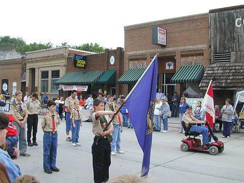 Troop 353 pauses to take a moment of silence to remember those who are serving in the armed forces during the parade for Louisville Daz.
