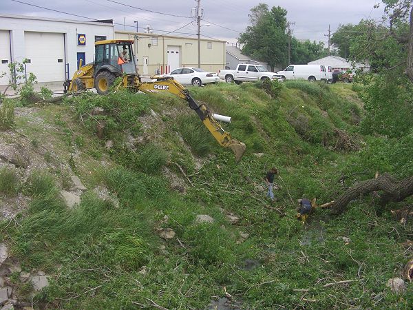 Dan Henry, Randy Payne and the rest of the City Crew are still working on removing the branch from creek bed, the future of the tree is unknown but looking at the damage one might suppose it will have to be removed entirely.