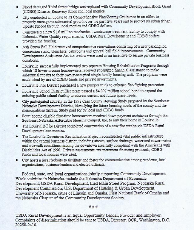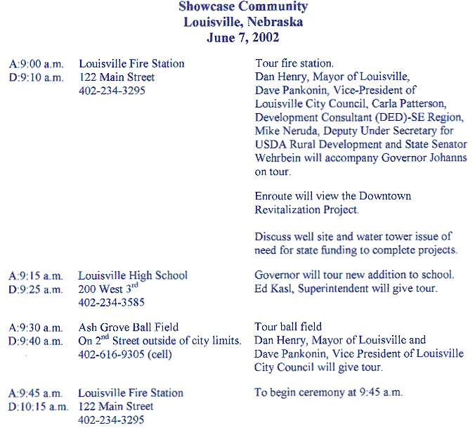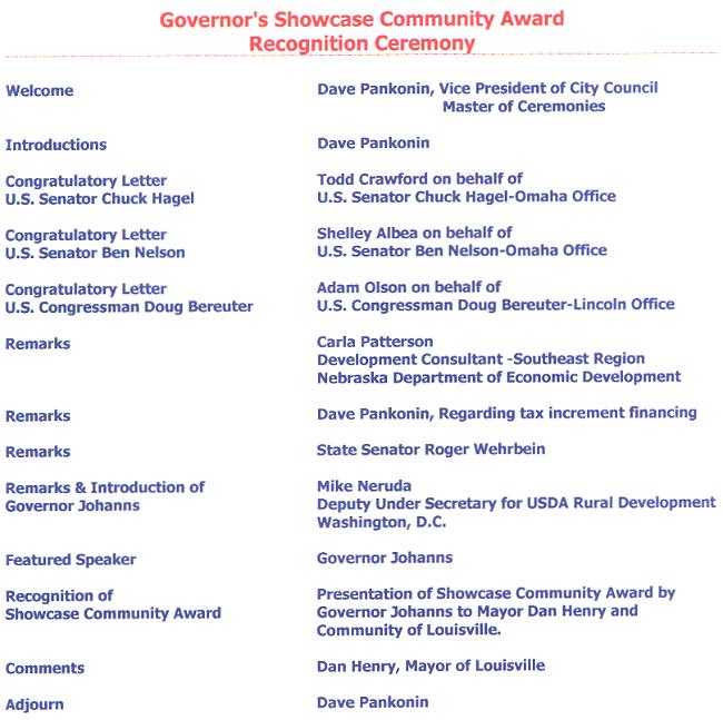 Dan Henry thanked Governor Johanns on behalf of Community of Louisville.